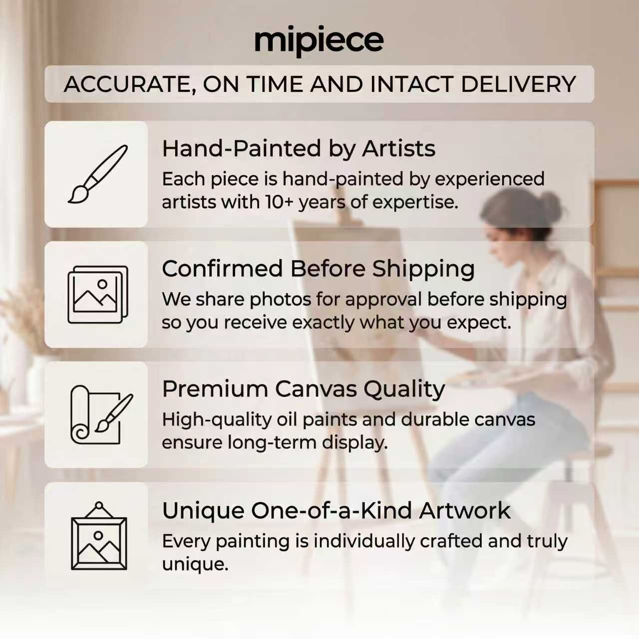 Hand-painted artworks ship only after customer approval